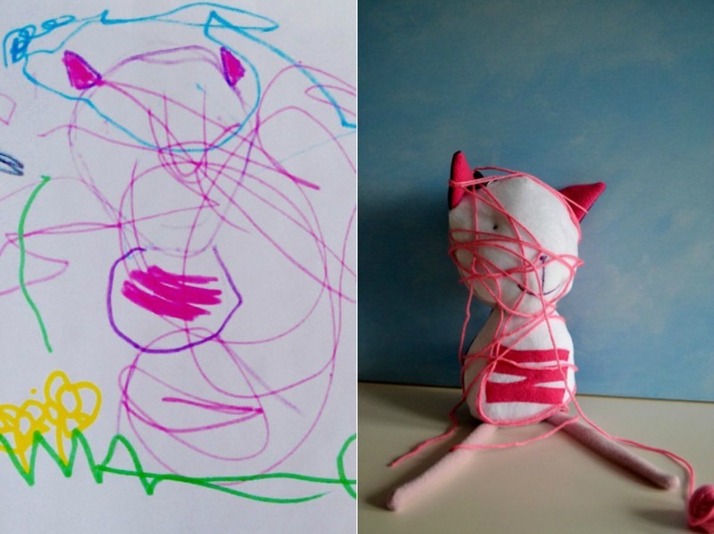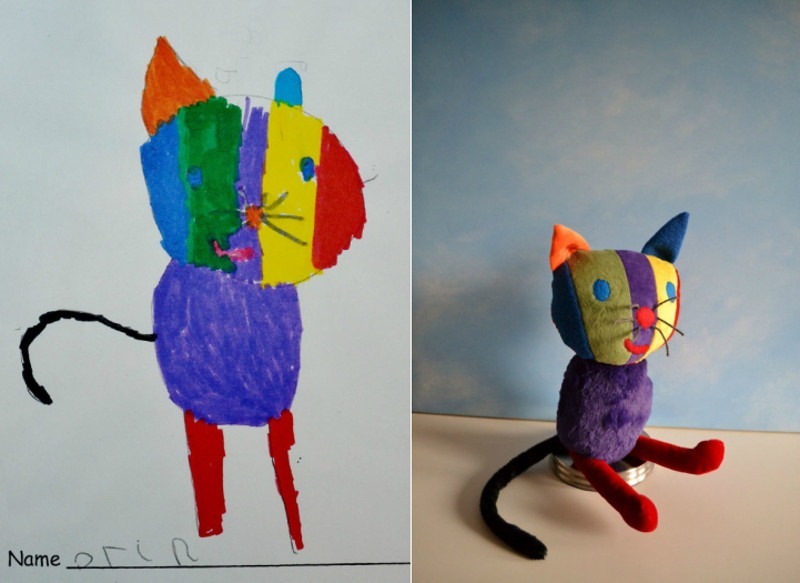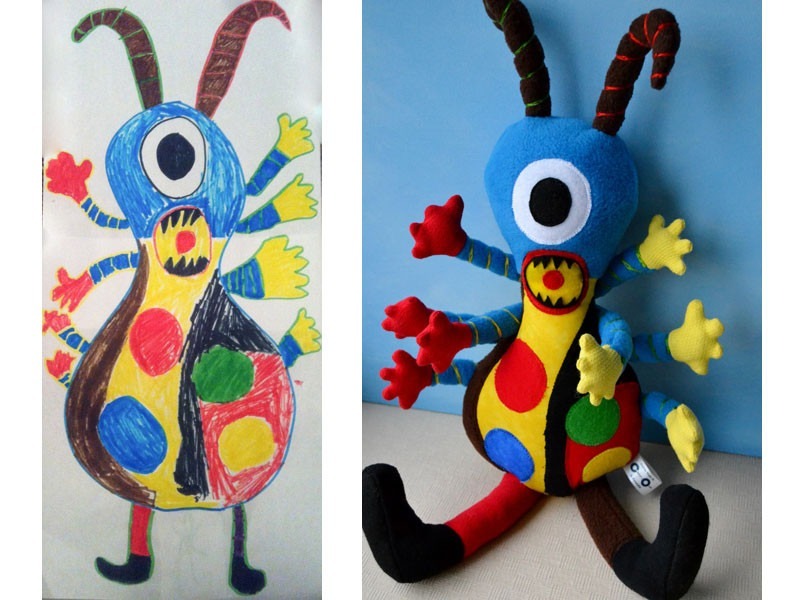 Child's Own Studio의 웬디 차오와 같은 공예가 덕분에 이제 정확히 그렇게 할 수 있습니다. 아이가 그린 그림을 보내주시면 아래와 같은 봉제인형으로 변신합니다.